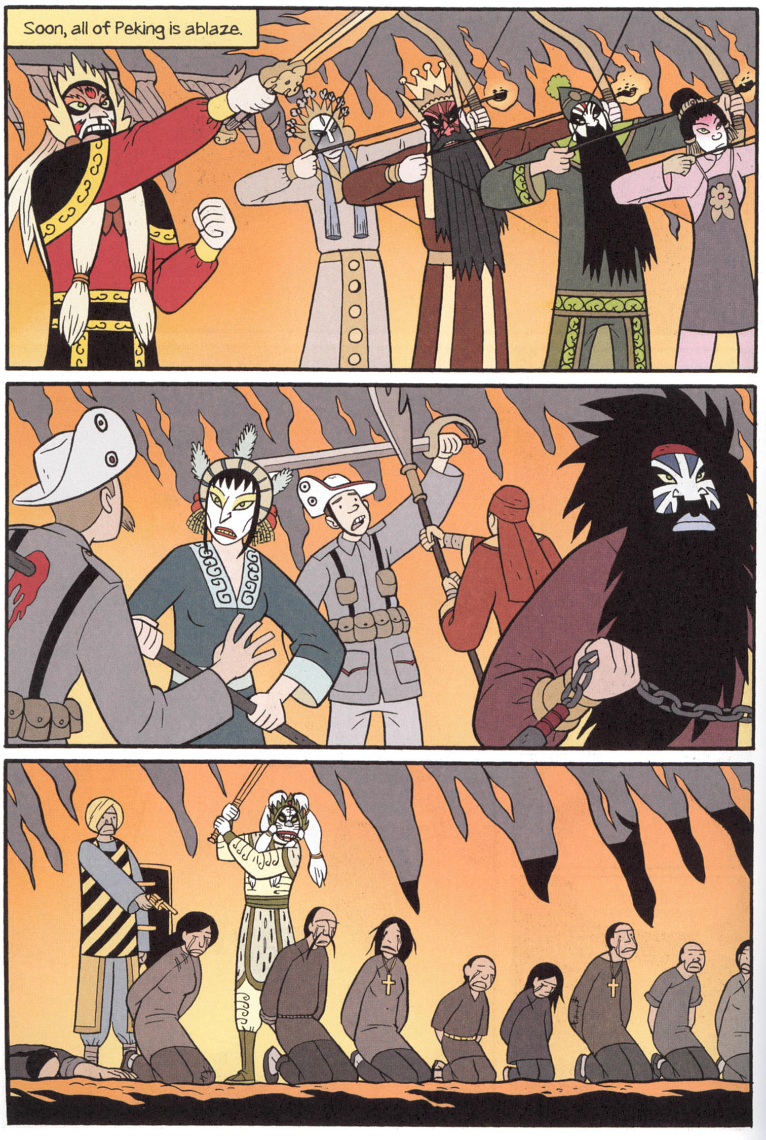 this is your book. The main focus of Boxers is Bao, who grows from a random peasant boy to a redresser of wrongs who will save China and maybe even get the girl.