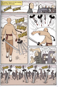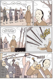 Visually I am not sure Yang’s style works as well as it could with the subject matter. Early on Bao discovers that his dad is in fact a gongfu hero.