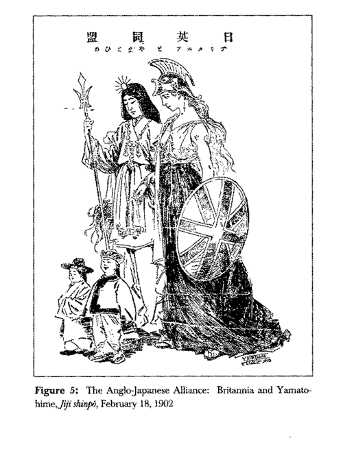 Above is a nice image that I use in class. I think I got it from Fairbank. I am not quite sure where it comes from, but it is clearly dealing with the Anglo-Japanese Alliance. A version I found through Google Image suggests that it was published in 1902.