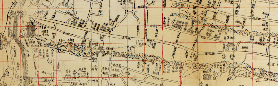 This map resembles closely a redrawn map that William Rowe uses in his fantastic two volume history of Hankou from 1796-1889. The map is wonderful to browse and in many places, the proportions seem about right when it comes to streets, even as the map preserves a landscape profile view of the hills in Guishan (龟山) area north of the Hanyang walled city, and the hills that split Wuchang north and south, bounded on the Western side by the Yellow Crane Tower (黄鹤楼). However, beyond the city streets, other areas seem a bit off in terms of proportions, such as the land between the Han river and the Guishan hills, which appears to me to be much larger an area of land than it should be.