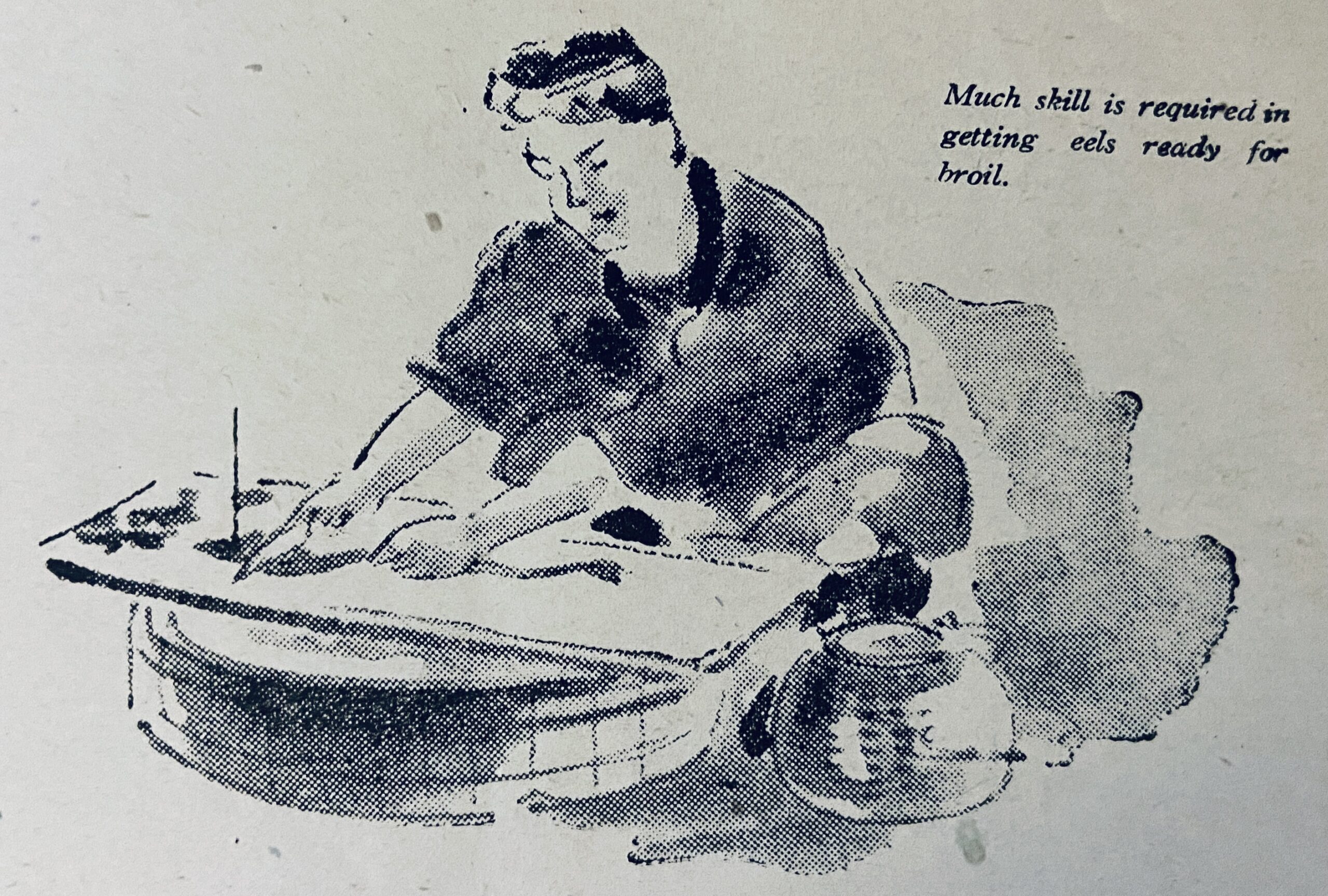 See Eric Rath’s new work on the history of sushi for a more extensive discussion of these origin tales, but most interesting to me is that this was what Katsumata decided to go with for the conclusion of his pamphlet: a nod to Chinese connections. Was this part of a likely earlier 1935 edition of the pamphlet, or something new added in 1946, one might wonder. This is followed by the final sentence of the pamphlet, which doesn’t exactly leave one with the image of sushi as the pinnacle of refinement: “Sushi is now widely used for convenience of handling in garden parties, athletic meets, and picnics.”